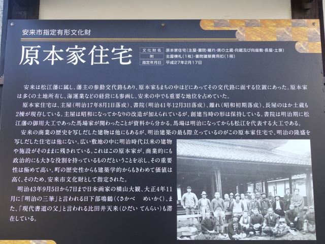駅の観光案内所で教えてもらった「和鋼博物館」は、駅から10分ほど、砂鉄の取り出し方(岩、川砂、海砂)からたたら製鉄の資料などが展示されていました。また、駅の西側の出雲街道沿いのエリアには、廻船業などで富を得た当時の豪商たちの屋敷がぽつぽつと残っていました。