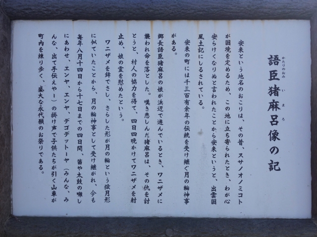 古くから「たたら製鉄」が盛んな地域で、原料となる砂鉄も地形が変わるほど取れたそうです。また、古くは出雲街道の宿場町で、さらに鉄や米の積出港、北前船の寄港地としても栄えていました。