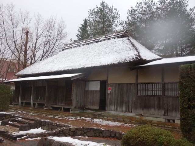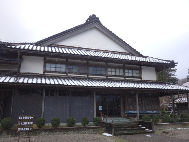 「おしゃぎり」とは、お祭り(村上大祭)で引く屋台(山車)のことだそうです。「おしゃぎり会館」の隣にある若林家住宅や、「まいづる公園」にも何棟かの武家屋敷が移築・復原されていました。